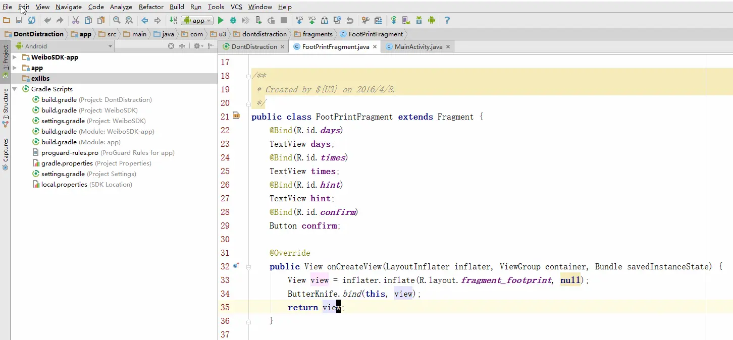 1.适用于Activity/Fragment,使用了ButterKnife的情况