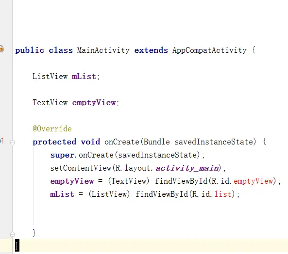 5.根据记录下的id和name的map,找到oncreate/oncreateview方法,在设置了layout的代码下面生成findviewbyid语句